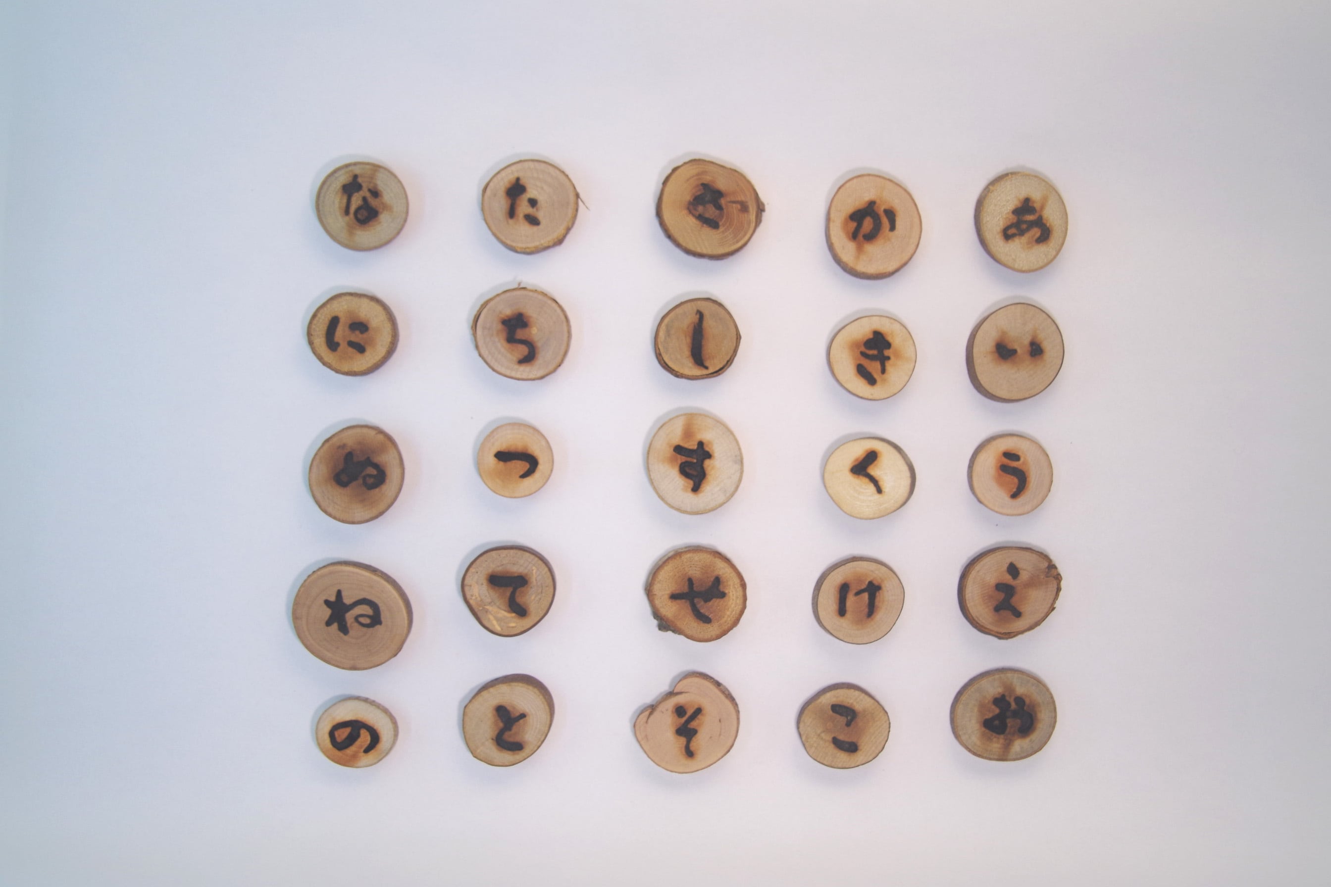 手書きのようなかわいらしい字体の焼印を、ひとつひとつ手作業で押してつくっています。